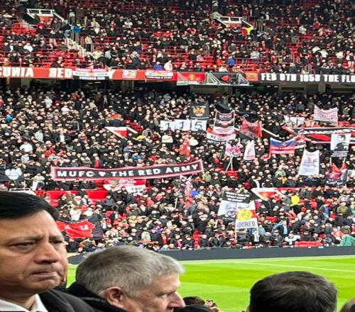 互相伤害,曼联球迷举“115”标语,曼城球迷高唱阿莫林歌曲
